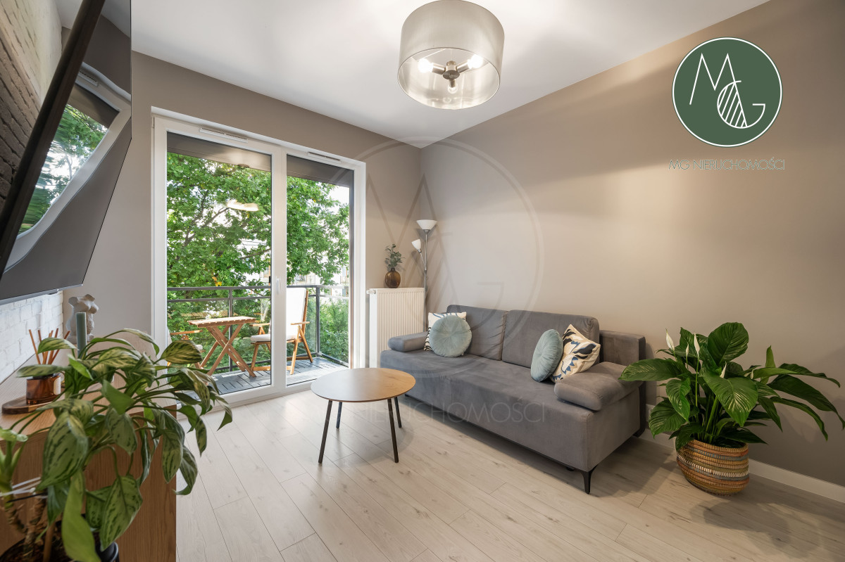 - wygodnego pokoju dziennego połączonego z kompaktowym aneksem kuchennym wyposażonym we wszelkie sprzęty, z wyjściem z pokoju balkon i widokiem na zieleń