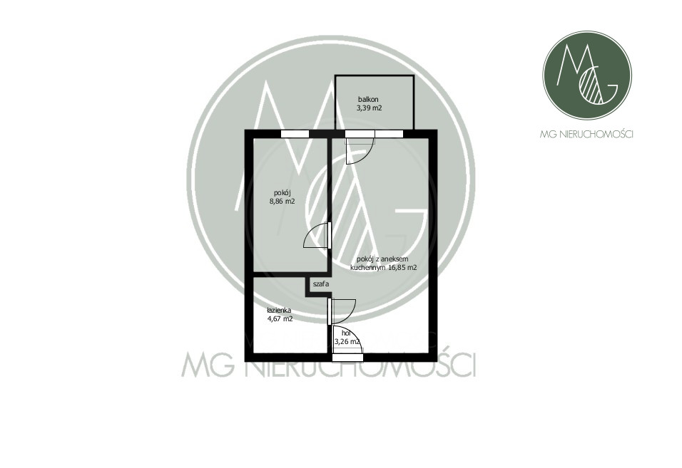 - balkon o pow. 3,39 m2, z widokiem bezpośrednio na zieleń