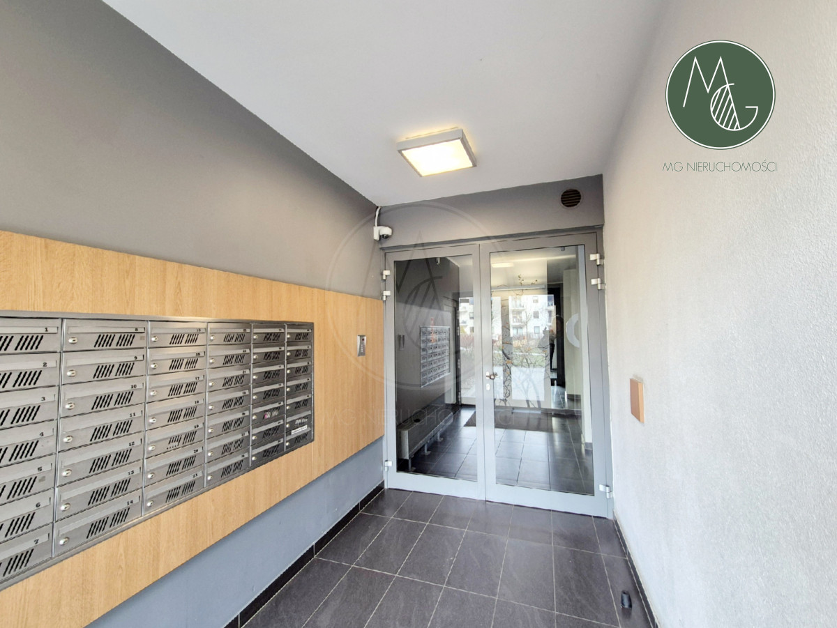 BUDYNEK:Zadbany budynek z 2014 roku z estetyczną klatką schodową, wyposażony w windę, wejście zabezpieczone domofonem, dodatkowo na terenie osiedla znajduje się monitoring. Woda i ogrzewanie z sieci miejskiej.