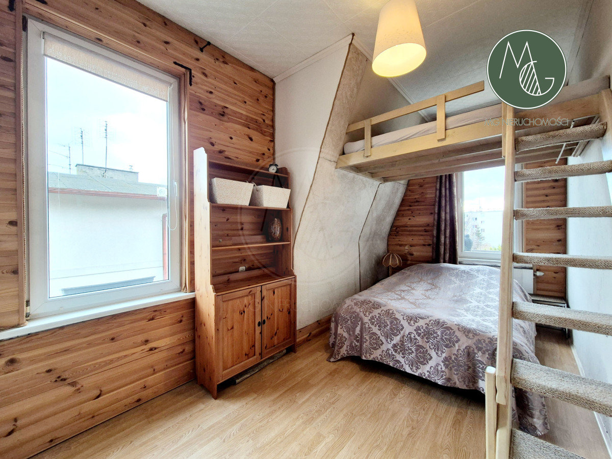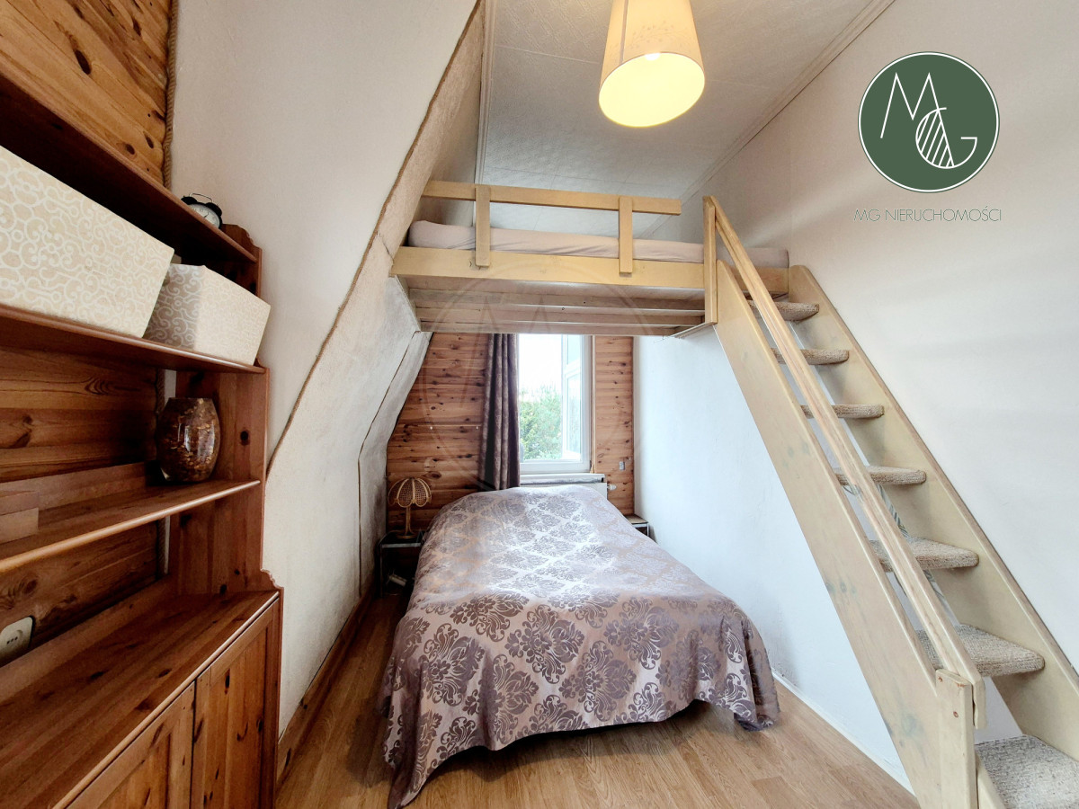 - pokój z łóżkiem, z dodatkowym łóżkiem na antresoli, mogącej służyć jako miejsce do przechowywania