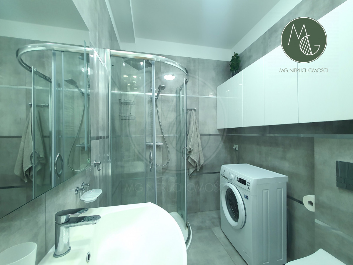 - przestronna łazienka z kabiną prysznicową, pralką i miejscem do przechowywania