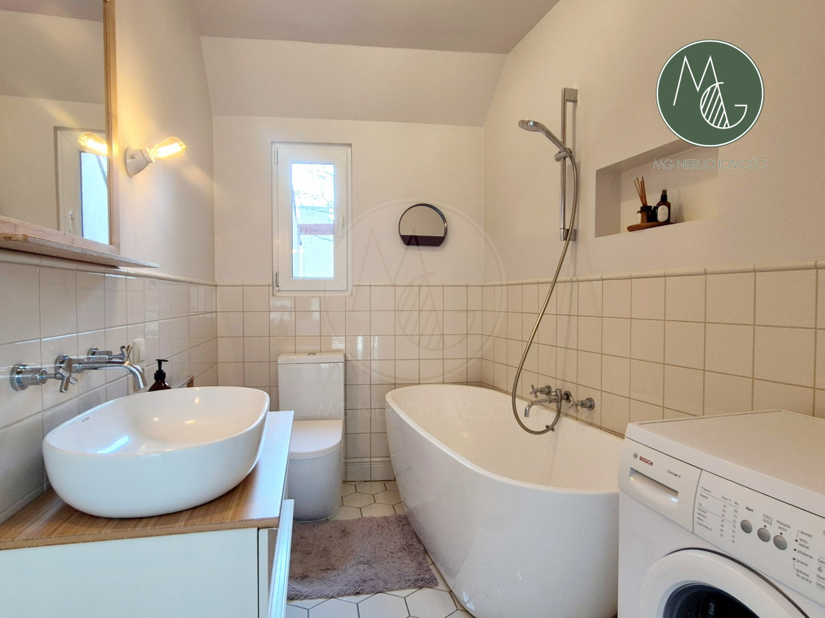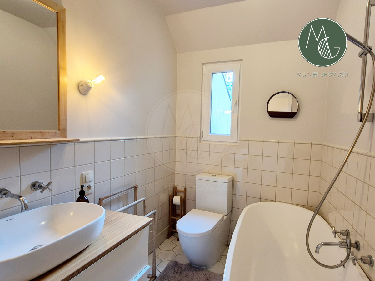 - wygodnej łazienki z wolnostojącą wanną, WC i miejscem do przechowywania