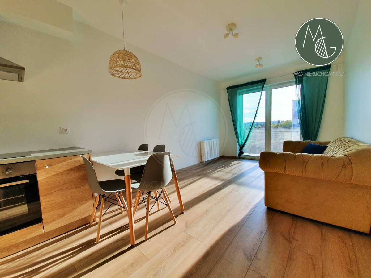 Do wynajmu długoterminowego oferujemy słoneczne, wyposażone i bardzo funkcjonalne mieszkanie dwupokojowe o powierzchni 38 m2, znajdujące się na 4 piętrze budynku z 2019 roku, z balkonem i widokiem na zieleń. Oferta idealna dla osób młodych, szukających nowego, ładnego mieszkania w nowym budownictwie z dobrą komunikacją i niskimi opłatami.
