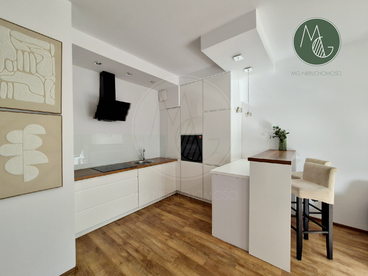 - funkcjonalnego i w pełni wyposażonego aneksu kuchennego (lodówka, piekarnik, zmywarka, płyta indukcyjna, okap, meble na wymiar, dużo blatu roboczego)